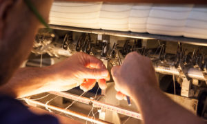 La presenza in laboratorio di trapuntatrici, bordatrici, fasciatrici e cucitrici continuamente aggiornate, ci consente di mantenere alti gli standard qualitativi delle cuciture e delle strutture interne del materasso e porre attenzione ai dettagli estetici, al fine di lanciare sul mercato prodotti sempre nuovi, belli da vivere, ma anche da vedere.
